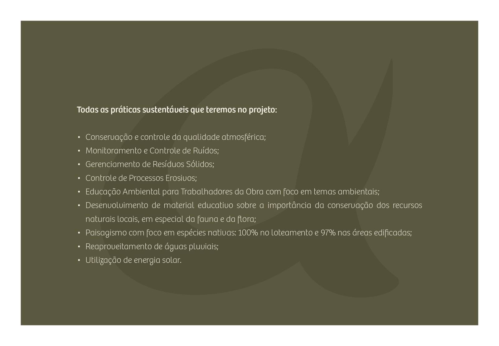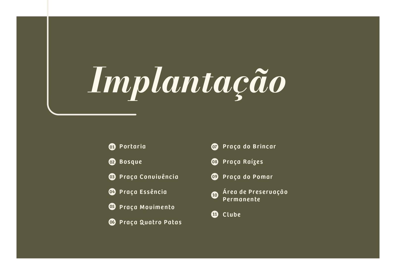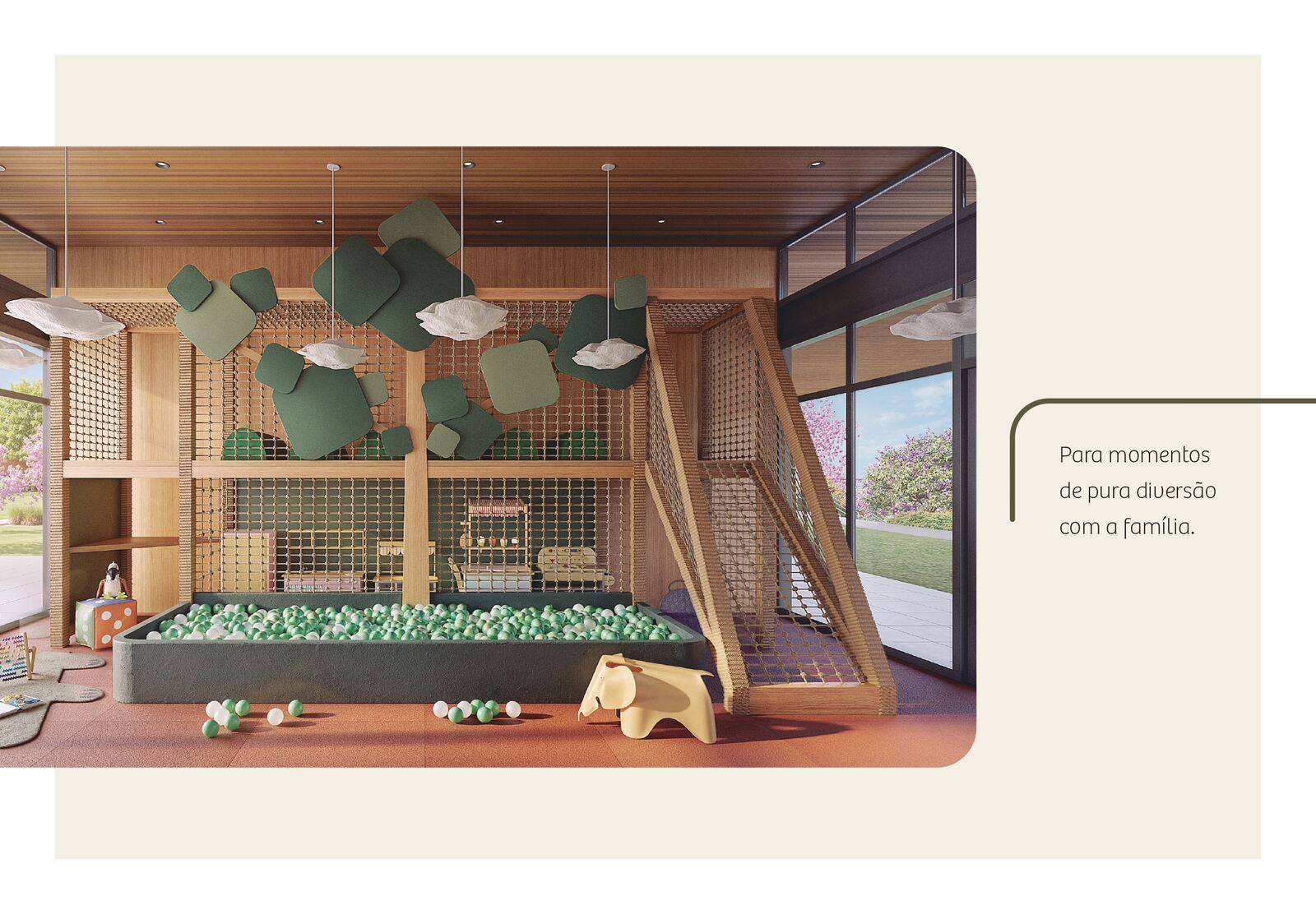 Ambientes de lazer: Academia, Sala de Jogos, Espaço Kids, Salão de Festas, Churrasqueira, Piscina Adulto com raia semiolímpica, Piscina infantil, Quadra Poliesportiva, Quadra de Tênis, Quadra de Areia, Campo de Futebol, Playground, Horta, Bosque e Praças.